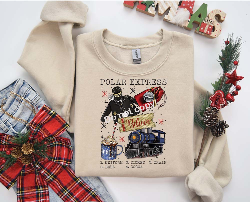 Christmas Polar express DTF Transfer in infant, youth and adult