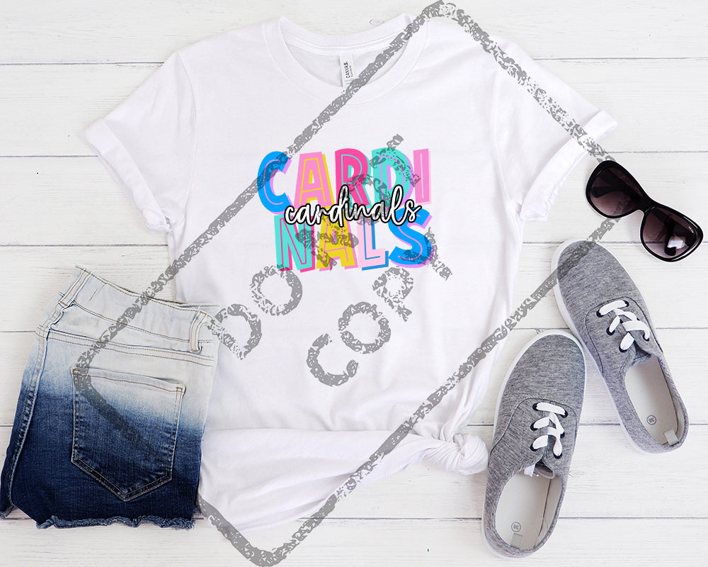 Script and Block School Mascot CARDINALS DTF Transfer in infant, youth and adult