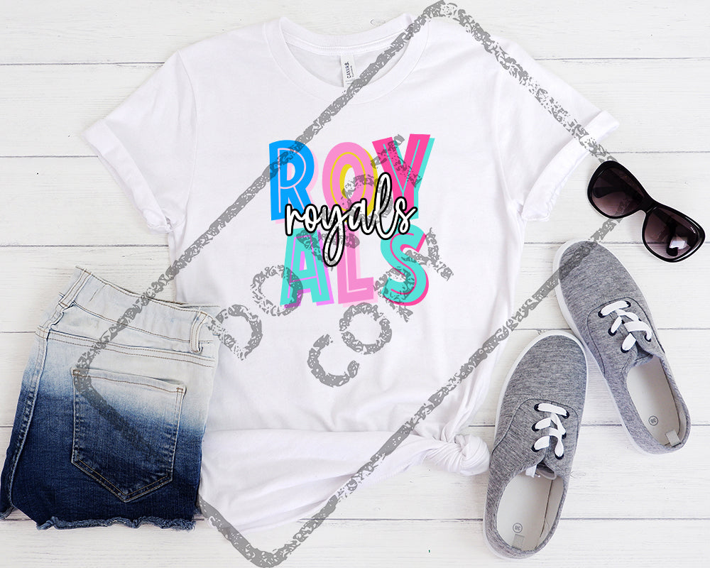Script and Block School Mascot ROYALS DTF Transfer in infant, youth and adult