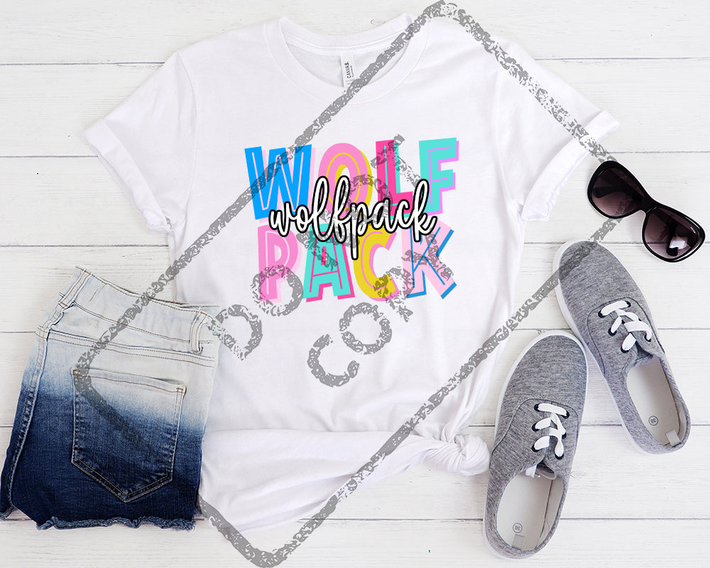 Script and Block School Mascot WOLFPACK DTF Transfer in infant, youth and adult