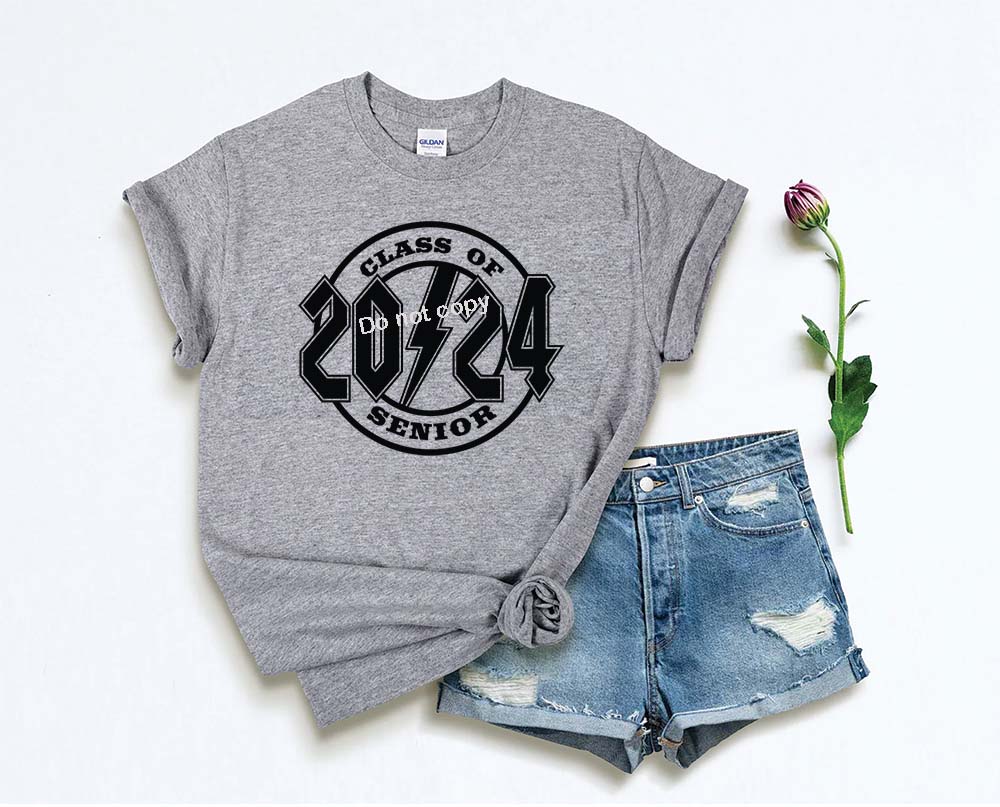 Senior 2024 Black with lightning bolt circle DTF Transfer