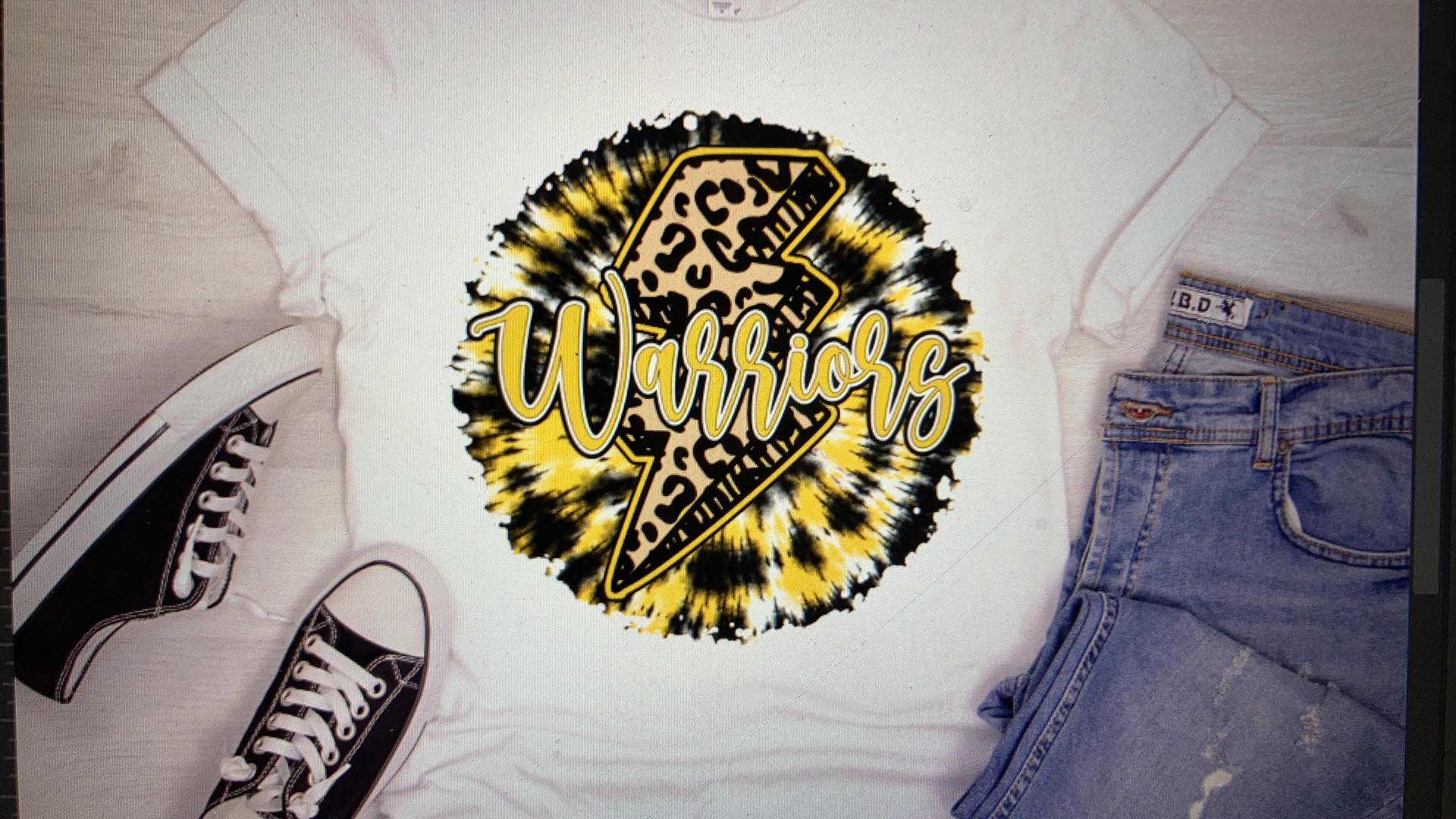 Tye Die Lightning bolt Warriors Gold/ Black in infant, youth and adult